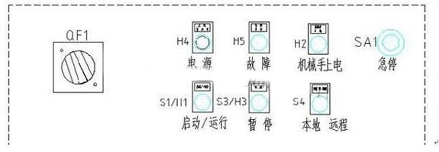是一個可以旋轉的開關。當開關旋轉至本地時,工業機器人自動運行由控制柜按鈕實現;當開關旋轉至遠程時,工業機器人自動運行由外圍設備控制實現。